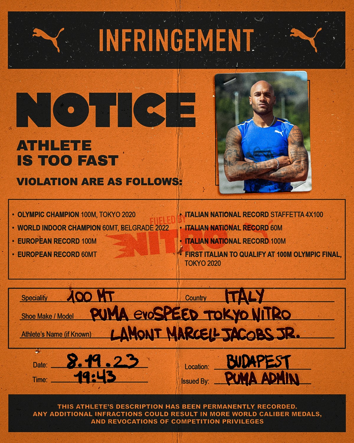 Graphic design, live content and creative development for PUMA during the 2023 World Athletics Championships.